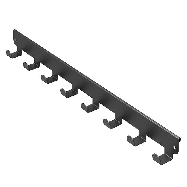 Крючки представляют собой металлическую планку с 8 крючками, которая навешивается на внешнюю боковую поверхность кронштейна в гардеробной системе ПРАКТИК HOME.