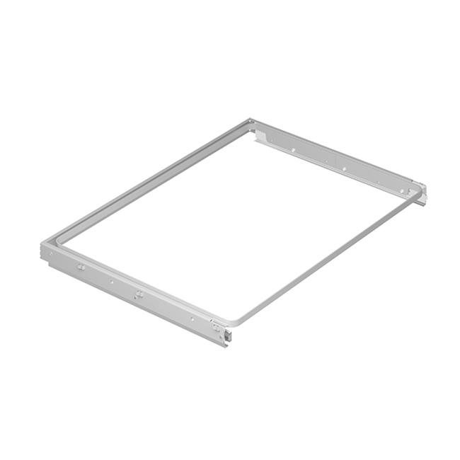 Выдвижная рама с доводчиком для мелкосетчатых металлических и пластиковых корзин.- Легкая установка между двумя вертикальными стойками на кронштейны полок 435 мм, инструменты при этом не требуются.